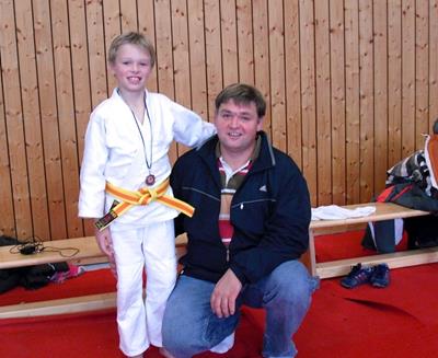 Foto: Christian Kuttalek mit seinem Sohn im Oktober diesen Jahres beim Landkreisturnier in Palling - 2. Platz