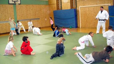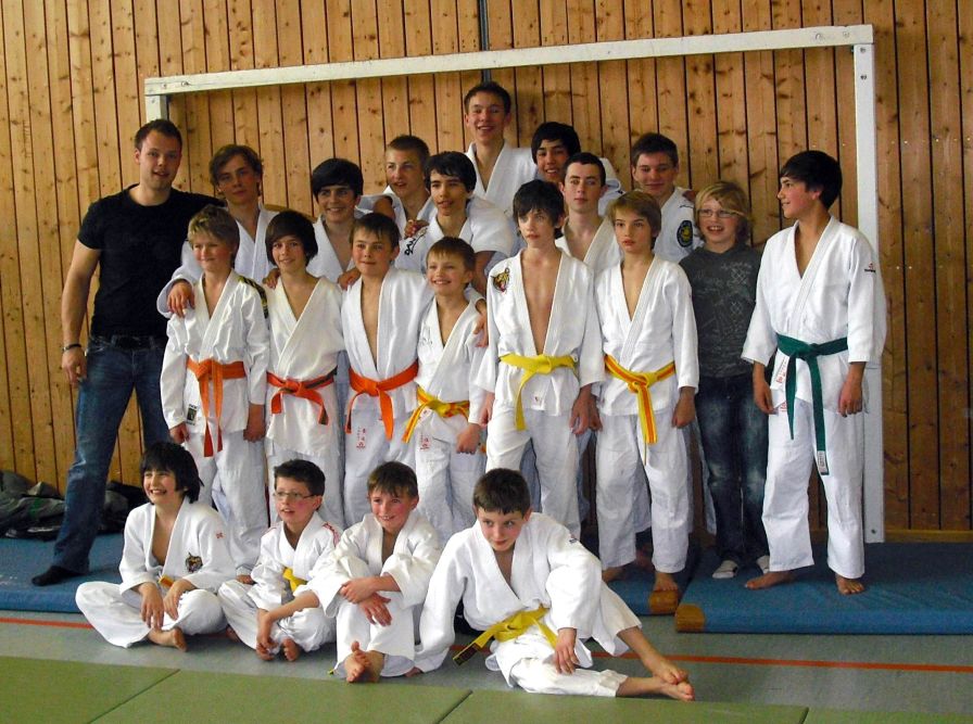 Die angepeilte Gruppenstärke liegt bei 25 Kindern. Da neben unserem Haupttrainer immer mindestens zwei, drei Trainerassistenten aus dem eigenen "Nachwuchs" mit "auf der Matte" sind, ist eine solche Gruppe auch leicht zu bewältigen.