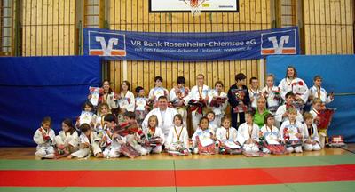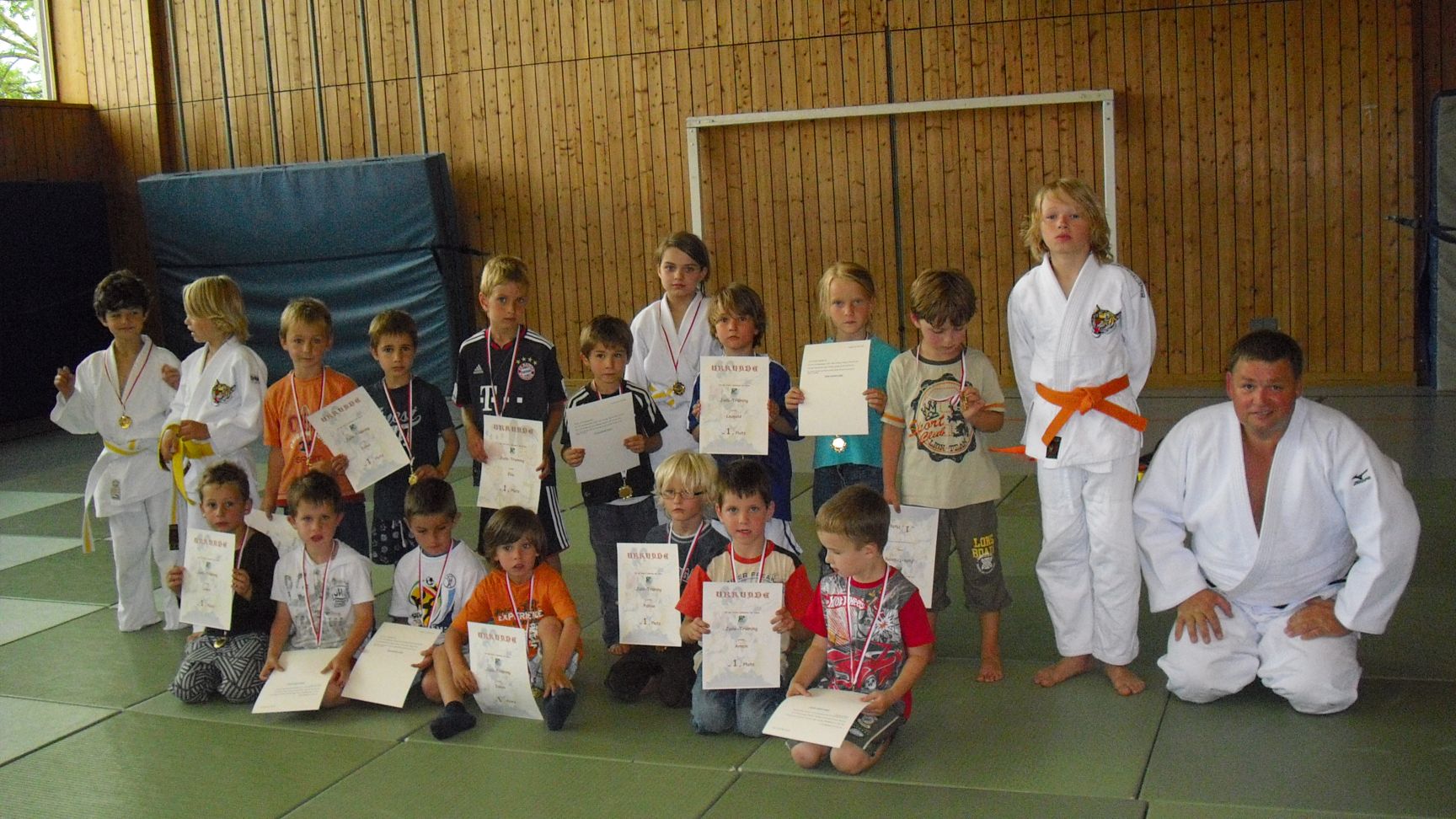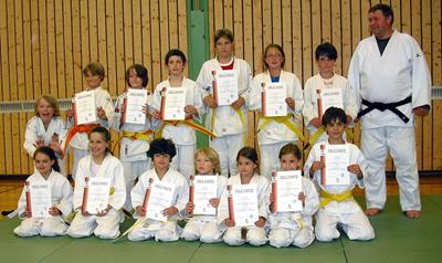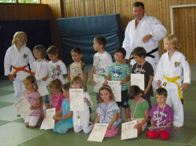 Zum Abschluß bekam dann jedes Kind noch eine Urkunde (sehr zur Freude der Kinder auch mit dem ersten Platz versehen) und eine Medaille für ihr erstes Judotraining. Unsere Bestätigung für einen wunderschönen Nachmittag haben wir aus den vielen glücklich lachenden Gesichtern der Kinder entnommen.