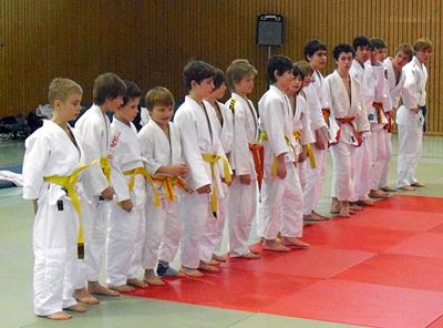 Trotzdem, oder besser gesagt, gerade deswegen, müßen wir die technische Vorbereitung unserer Sportler konsequent fortsetzen. So konnten in einer sehr gut vorgetragenen Gürtelprüfung 13 unserer Judo-Kids ihre Tauglichkeit für den Erwerb des nächsthöheren Gürtels unter Beweis stellen.