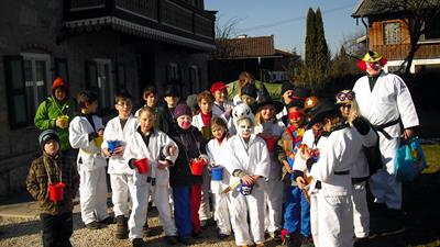 Lange mußten wir darauf warten. Die Vorfreude war groß und endlich war es dann soweit. Bei herrlichem, sonnigen Wetter und Frühjahrstemperaturen machten wir uns mit 25 Mädels und Buben auf, die Wiederbelebung des Faschings in Grassau zu feiern. Da waren eine Hexe, da war der Michael Jackson, aber auch Bob Marley und Superman waren dabei. Wir hatten Zauberer, einen