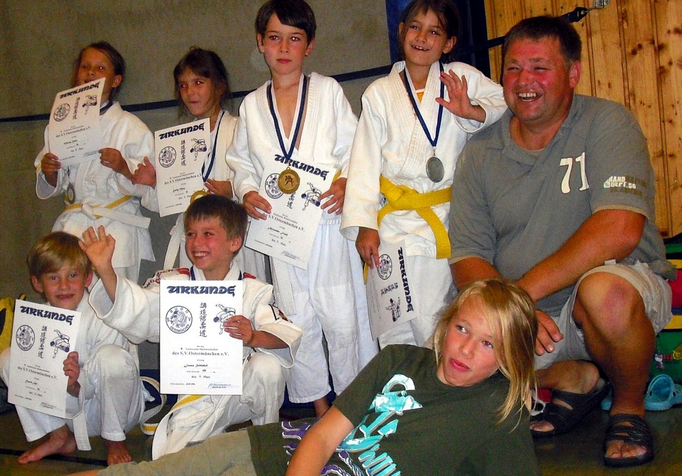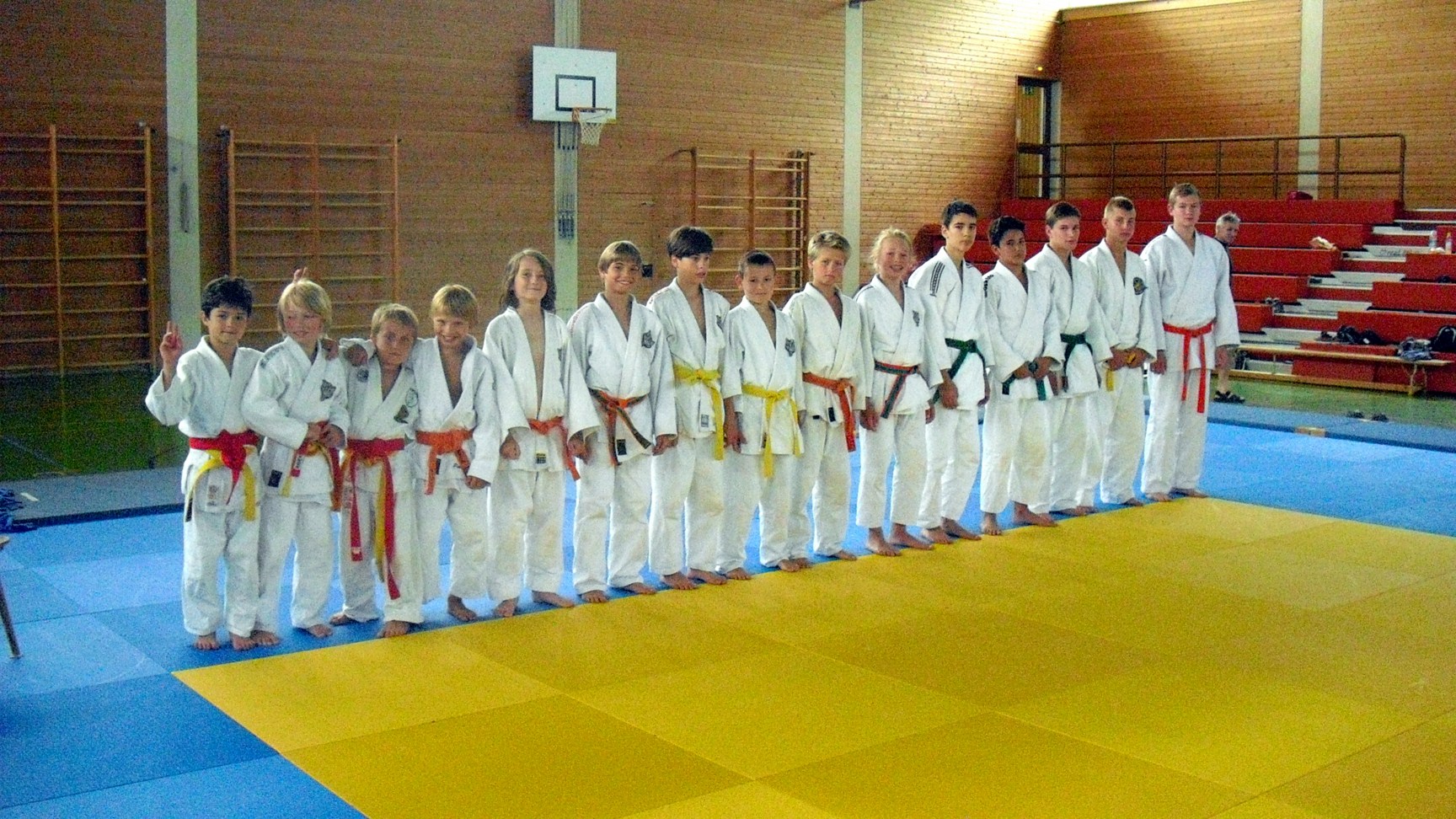 Die Fähigkeit verletzungsfrei zu fallen und damit die Zulassung zum Wettkampf durch erreichen des gelben Gürtels bewiesen, haben: Sebastian Steffl, Magdalena Niederhauser, Miriam Huber, Lukas Beilhack, Alex Frank, Jonas Schinkel und David Art.